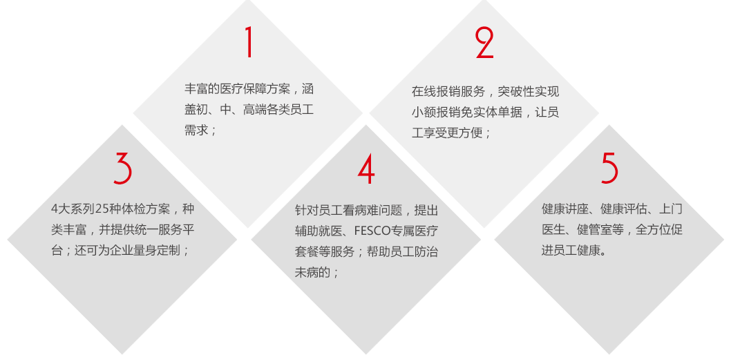 豐富的醫(yī)療保障方案,涵蓋初、中、高端各類員工需求;